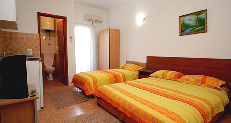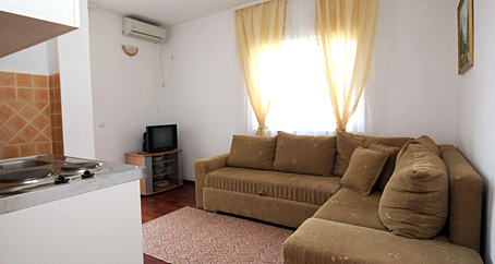 U ponudi imamo 3 apartmana ove vrste, od kojih su po jedan sa francuskim ležajem, jedan dvokrevetni i jedan trokrevetni. Opremljeni su mini kuhinjom, kupatilom, klima uređajem, televizorom i imaju terasu. Sva tri studio apartmana su smješteni na prvom spratu našeg objekta.