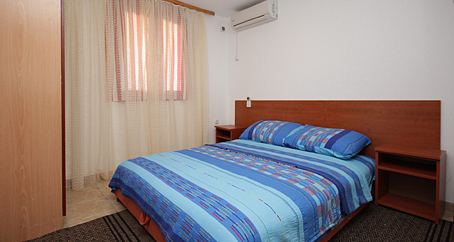 Smješten je na prvom spratu objekta i imamo dva ovakva apartmana u ponudi. Posjeduju jednu spavaću sobu sa francuskim ležajem i ormarom za garderobu. U dnevnoj sobi nalazi se ugao na razvlačenje koji može da posluži kao dodatna dva ležaja. Opremljen je mini kuhinjom, kupatilom, klima uređajem, televizorom i ima terasu.