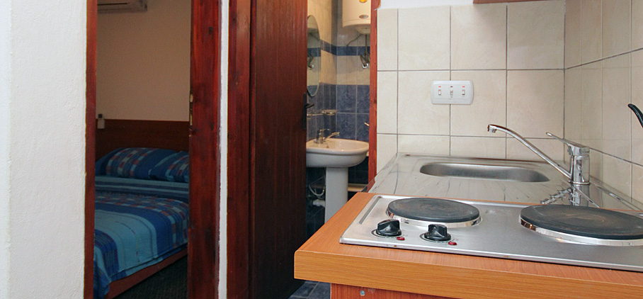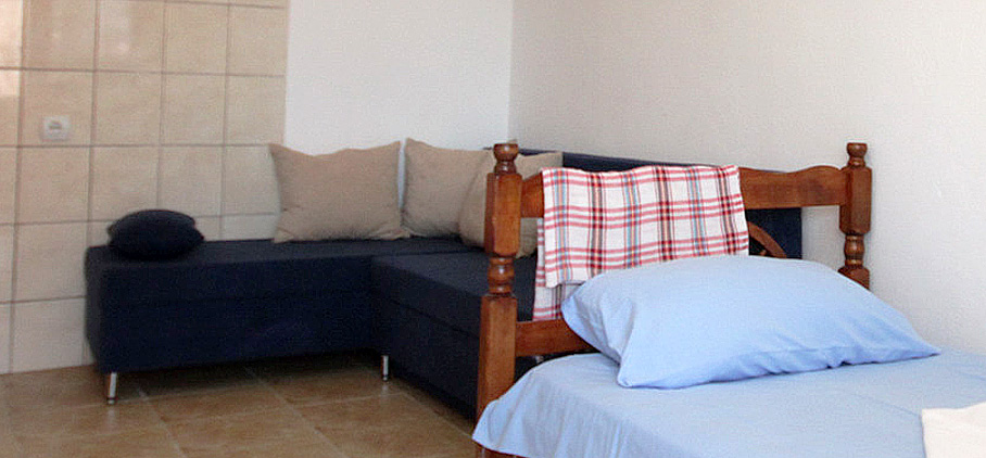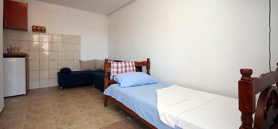 U ponudi imamo 3 identična standard apartmana koji su smješteni u prizemlju našeg objekta. Svaki posjeduje sobu sa francuskim ležajem i terasu. U dnevnoj sobi nalazi se ugao na razvlačenje, koji može da posluži kao dodatna dva ležaja. Opremljeni su mini kuhinjom, kupatilom, televizorom i klima uredjajem.